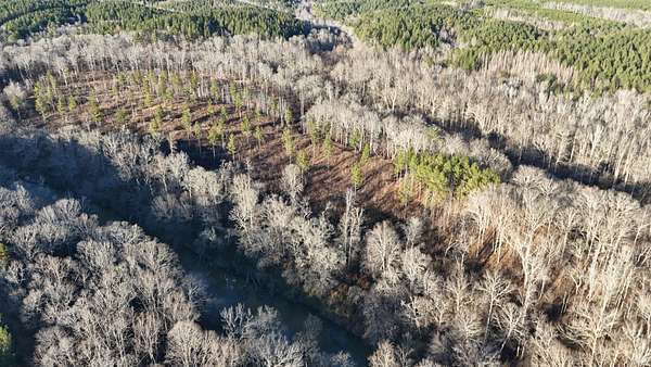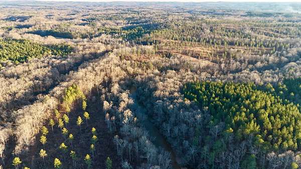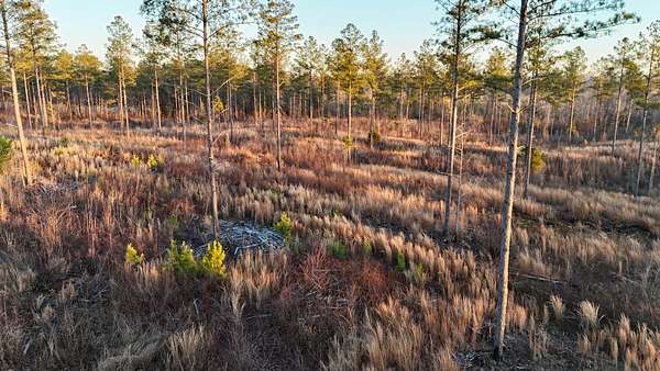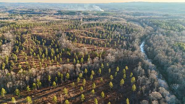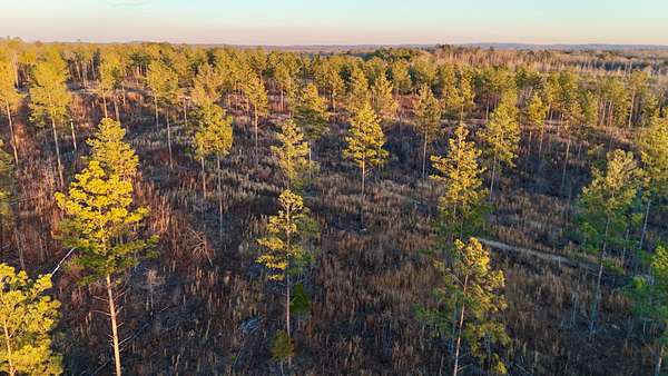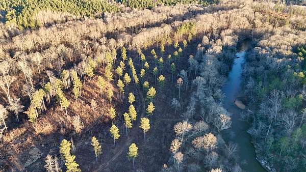 The land is anchored by a beautiful stand of plantation-style pine timber, creating a uniform and visually striking landscape. Mature hardwood streamside management zones dissect the pine stands, providing natural diversity, wildlife habitat, and scenic corridors throughout the property. The overall composition reflects thoughtful stewardship and a strong sense of place.