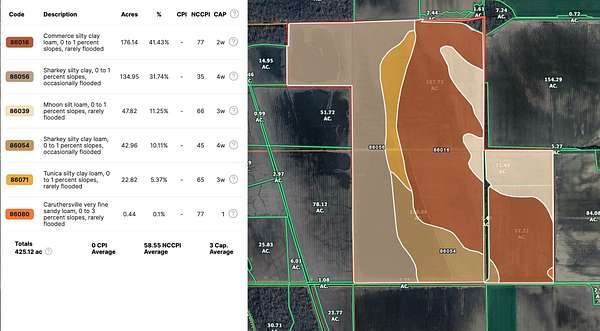 Premium River Bottom Investment: 440 +/- Acres in the Wolf Island Region of Mississippi County, Missouri- An exceptional opportunity to acquire approximately 440 acres of highly productive, Mississippi River bottom row crop land in the renowned Wolf Island region of Mississippi County, Missouri. This property is an excellent agricultural asset, distinguished by its superior soils and irrigation capabilities. The history of this area is defined by the very land itself; centuries of Mississippi River floods deposited alluvial, nutrient-rich topsoil here, making the reclaimed lands some of the most sought-after and high-yielding acreage in the country. The fields consist primarily of Commerce Silty Clay Loam, alongside Sharkey Silty Clay and Mhoon Silt Loam--a composition known for its farming resilience and capacity to produce top-tier commodity crops, historically yielding over 200 bushel corn, 50 bushel soybeans, and 100 bushel wheat with room for improvement. To maximize this potential, the northern portion of the property is irrigated via a center pivot system, ensuring consistent water supply and yield stability. The farm offers solid, dependable access and system of field roads with solid drainage, further contributing to operational efficiency. This is a rare chance for both operators and investors to invest in blue-chip agricultural acreage--a turn-key, high-performing asset in the heart of the Missouri Delta. For those seeking to expand their operation, an additional 80-acre parcel is also available on County Road 512.