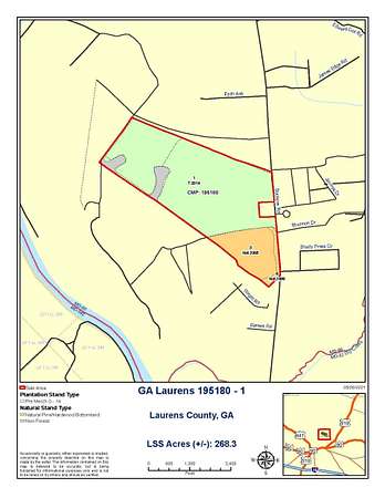 Est $6,302/moLocated between Macon and the Coast, the Buckeye Road Tract sits just 4 miles northeast of downtown Dublin, Georgia, and a mile east of the Oconee River. This exceptional property offers a valuable timberland and recreational investment opportunity, with the majority of the acreage covered in pine plantations established in 2014. Along the southern edge of the tract, you'll find a natural mix of hardwood and pine. One of the standout features of this tract is the +/- 2,500 feet of road frontage. The immediate area is home to a diverse mix of residential, commercial, and large acreage properties, adding to the allure and value of this pristine tract. Contact us today to schedule a showing!