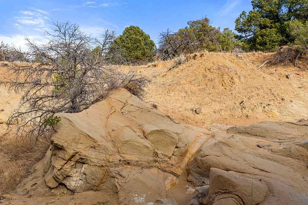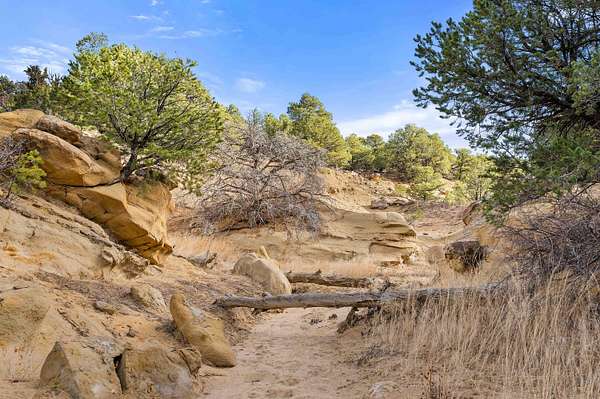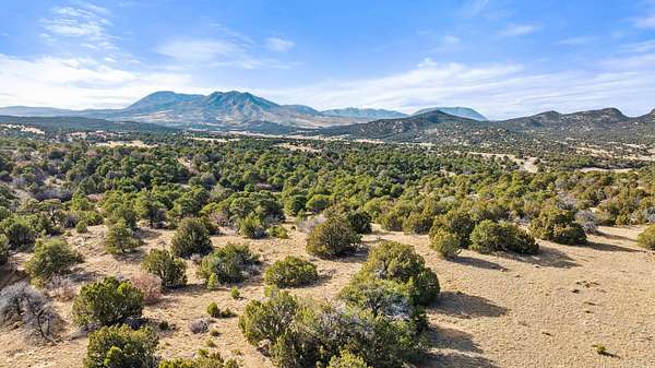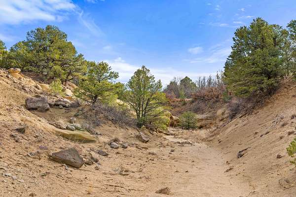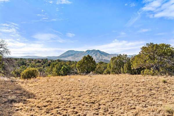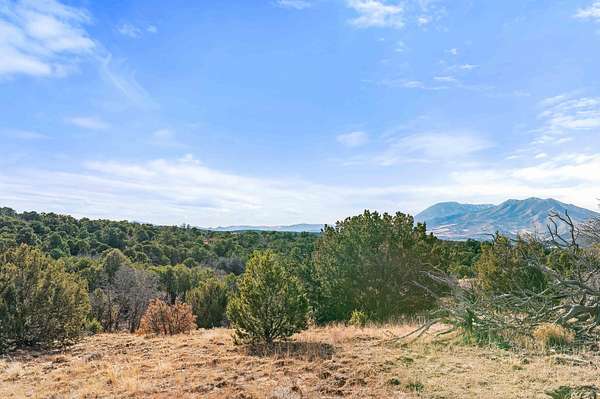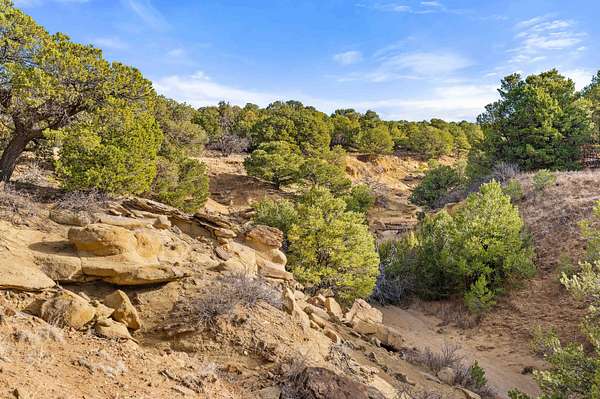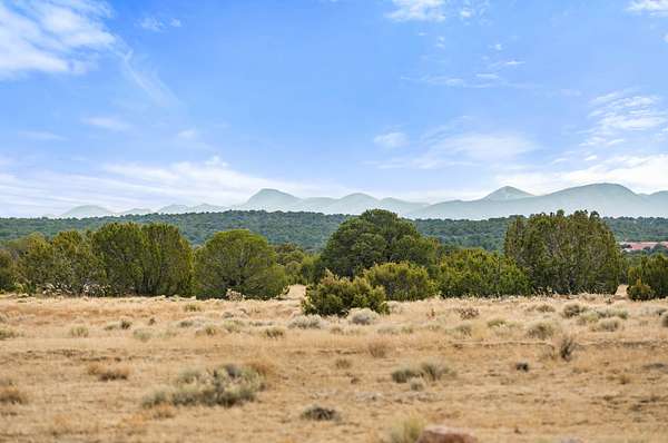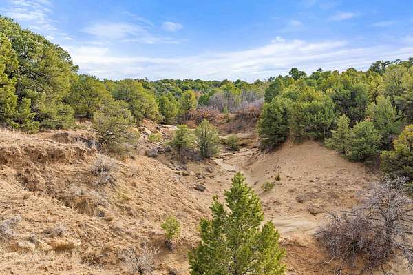 The terrain is a mix of open meadow, scattered pinon pine, and a natural arroyo that winds through the southern portion of the property. The landscape's variation creates several areas perfect for future development while maintaining privacy and distance from neighboring parcels and the county road.