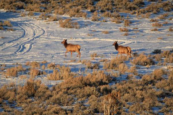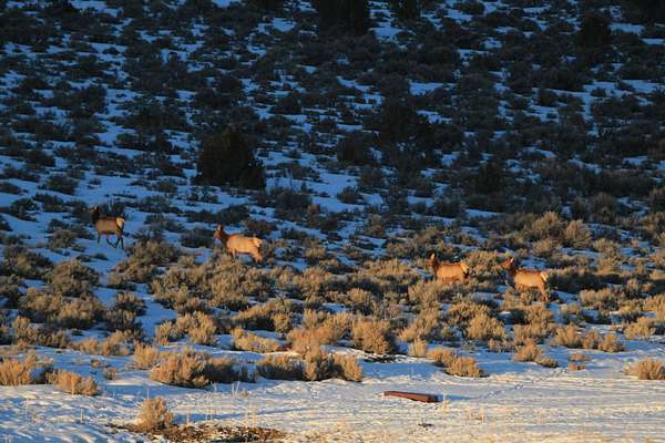 Located in GMU 211, the property offers over-the-counter elk tags and qualifies for deer and antelope vouchers. Elk, deer, and antelope frequent the property and surrounding BLM lands throughout the year, with game movement increasing in the late seasons as snow drives herds from higher elevations. Spring shed hunting is especially rewarding thanks to the large number of animals that winter on the ranch.