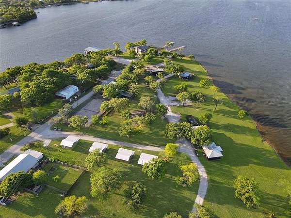 Incredible opportunity to own over 1,400 ft of lake frontage on Lake Leon! Currently operating as a successful RV and cabin rental resort, La Manch Lake Ranch offers exceptional income potential or future development possibilities.