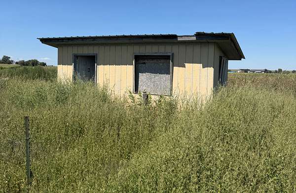 There is a small shed located between the pond and the pivot base, but no other buildings besides the hunting blinds exist. The conservation easement in place prohibits other buildings or permanent residential structures from being built. Please read the attached conservation easement. Electricity is run to the pivot base and power is supplied by XCel Energy.