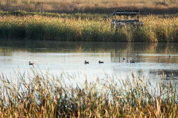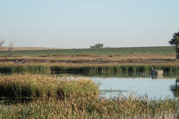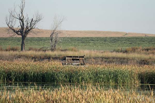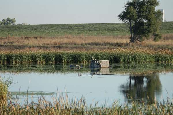 Waterfowlers can expect excellent duck and goose hunting on this property, starting with Teal season in mid September. Five hunting blinds were originally set up around the pond to handle any wind direction and variable spreads of decoys. The pond in roughly knee-height deep so managing decoy spreads is easy. With close proximity to the South Platte River, a variety of species and ducks and Canadian geese frequent the pond and cut corn field, where an in-ground pit blind can host up to 4 hunters.