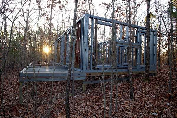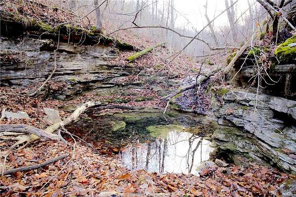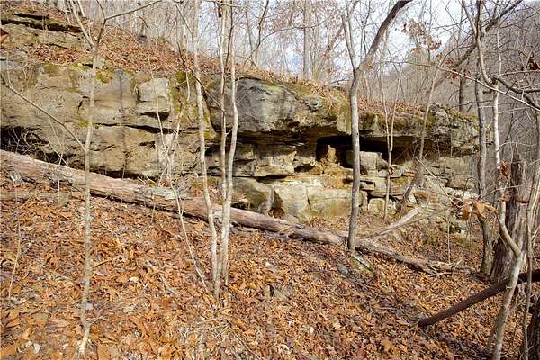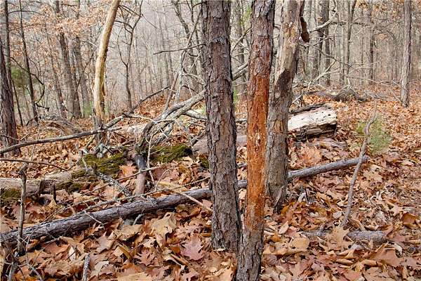 98 Acres of Rugged Ozark Beauty- Caves, Ridges, and Excellent Views! Tucked away in Marion County, this 98 +/- acre tract offers privacy, terrain, and recreation. Access is via a deeded easement off CR 6061, leading to a main ridge that runs north and south through the property with multiple potential build sites for a cabin, homesite, or food plots. From the north side of the ridge, the land drops nearly 400 feet into a hollow with a wet-weather creek that held water this summer. Between the two ridges is a substantial cave, adding a unique feature for exploring and recreation. The terrain then climbs another 300 feet to a secondary ridge along the east side. Primarily hardwood timber with some pine mixed in. Deer and turkey sign throughout with a small clearing for a plot or off-grid cabin. A metal shell from a former cabin project remains and may offer value for future plans. Convenient to the White River, Bull Shoals Lake, and the Buffalo National River, with Flippin and Mountain Home nearby for supplies.