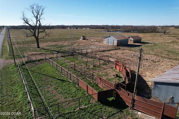 This outstanding 240+/- farm offers a combination of productive land, established infrastructure, and location, making it ideal for cattle operations, row crops, or diversified ag enterprise. The property is currently established in grass, providing immediate usability for livestock, with option to convert portions to tillable acreage as desired. Featuring primarily Class II and III soils, this farm is well suited for strong agricultural yields. The land is fully fenced and cross-fenced, allowing for efficient grazing management, and includes a livestock barn along with additional outbuildings to support day-to-day operations. Two water wells are already in place, complemented by on site electric. Natural water sources include two healthy ponds and a wet weather creek, providing reliable water for livestock and wildlife alike. With blacktop road frontage on two sides, the property offers excellent access and long-term investment appeal. Land splits are available, with four individual tracts ranging from approximately 40 to 80 acres - perfect for buyers seeking smaller acreage for a build site or small hobby farm. Conveniently located less than 6 minutes from I-44 and only 14 minutes from the Joplin Regional Stockyards, this farm delivers both rural functionality and close proximity to key agricultural markets. Whether you're looking to expand an existing operation or invest in high-quality farmland, this versatile tract checks all the boxes.