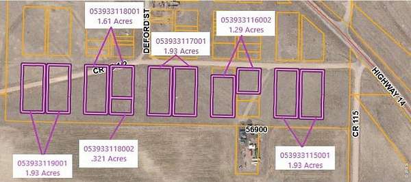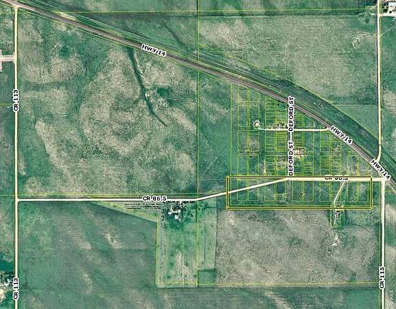 56 lots totaling approximately 9 acres are being sold together with future subdivision potential. Located at the intersection of County Road 86.5 and County Road 14 in the Buckingham area of New Raymer. The acreage presents an opportunity for future residential development. Consisting mostly of 7,000 sq ft lots, with a few smaller lots mixed in, you could purchase the properties and sell the individual lots separately. Have another use for the land in mind? You could work with the County to combine the smaller lots into larger parcels. With open space and rural surroundings, this AG-zoned land provides a rare chance to shape a property that fits your vision. Buyer to conduct their own due diligence with the County to confirm permitted land uses. See photos and attachments for additional information on the 56 lots included in the sale. Weld County shows them as 6 parcels, but the planning department has confirmed that their current approved use is the 56 lots. Lot lines shown in photos are approximate.