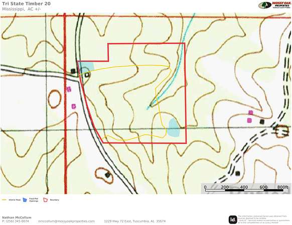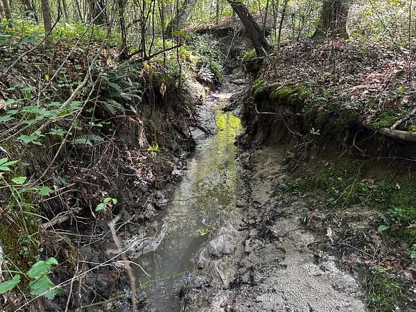 The land features gently rolling topography that is well-suited for residential construction or outdoor recreation. The timber stand is composed of approximately 90% hardwood and 10% loblolly pine, both of which are healthy and growing well. The mix includes a diverse range of species and products, including valuable tie and grade logs. A newly developed road system with properly placed culverts enhances access throughout the property, and approximately 1.5 acres of food plots have been established to support local wildlife. A creek flows through the tract, adding scenic and ecological value.
