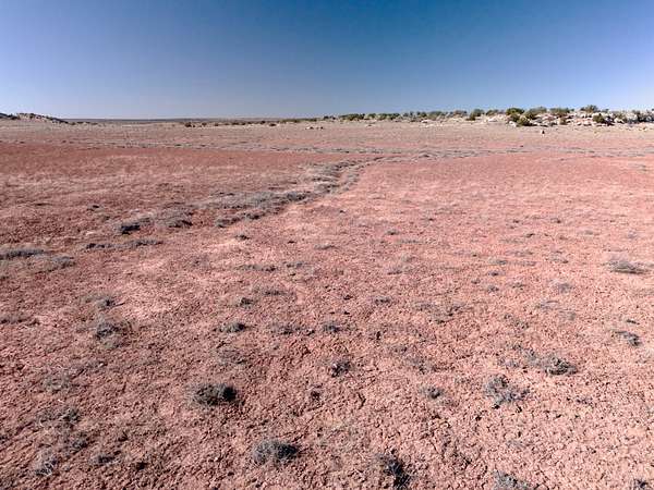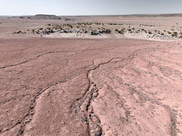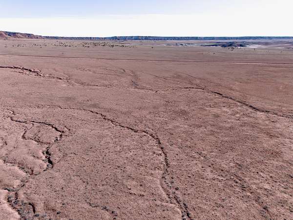 The terrain showcases the Painted Desert's signature characteristics--mostly level red soil in the southeast with a gentle rise in the northwest corner providing elevated views across the surrounding badlands. Various seasonal streambeds cut through the property, creating natural drainage channels that come alive during monsoon rains. At 5,800 feet elevation, you'll enjoy cooler temperatures than the Phoenix valley (87°F summer highs, 46°F winter highs) with approximately 275 days of sunshine annually--perfect for off-grid solar living.