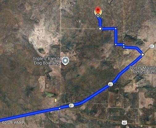 From Show Low, follow US-60 East for ~11mi. Stay left at the ''Y''. Continue for ~5mi. Turn left onto Hillcrest for 1.4 mi. Turn right onto 8053/Spruce, then immediate left onto 8088/Hohokam for 0.5 mi. Turn right onto Ruth for 1 mi, then left onto Ponderosa/8050. Follow for ~1mi to right turn onto 8119. Follow !1mi to CR 8060, turn right, corner property on left.