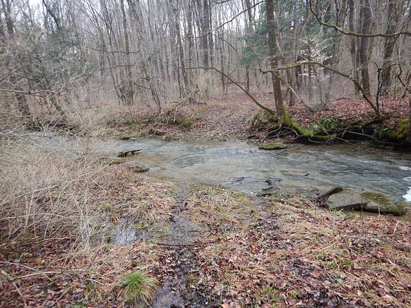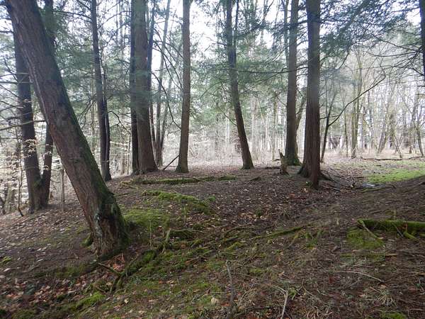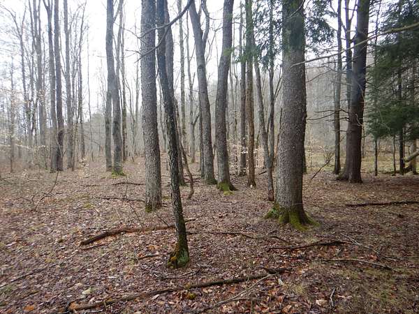 The east end of the property you will find a beautiful open hardwood stand on the top of the creek bank before changing to hemlock into the creek bottom. This creek bottom is a very distinct natural funnel for wildlife and a great spot to set up a campsite to enjoy the sound of the creek flowing with family around a fire! The species mix in the hardwood stand and creek bottom includes maple, cherry and birch with a few scattered oak trees throughout. The hemlock bank creates an excellent vantage point for the game trails following the bottom.