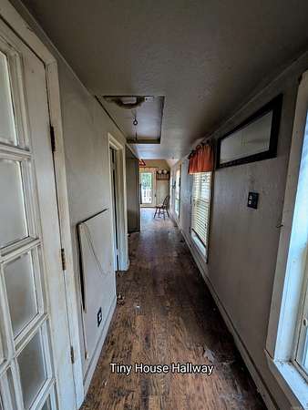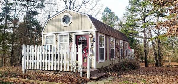 Est $601/moTiny home sitting on 10 wooded acres with a wet weather creek and large barn. Listen to the birds while sitting on the deck. Two cottages and other outbuildings. Bonus building for extra kitchen and laundry space. Fruit trees and garden area, fenced dog run. Deer visit daily!