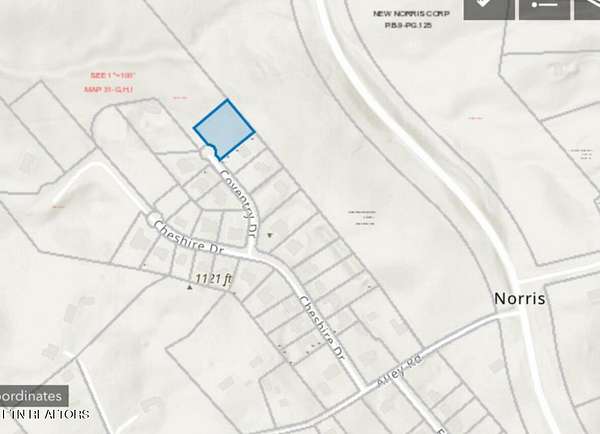 Take I-75 Norris/Clinton exit 122, Hwy 61 towards Norris, turn left onto Hwy 441, go about 2 miles and then turn left onto Alley Rd., turn right on Cheshire Dr., right on Coventry Dr., property is in the cul-de-sac on the right. Sign is on the property.