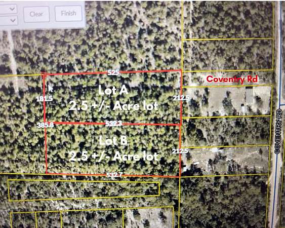 Est $525/moFantastic opportunity to build your dream home on this beautiful +/-2.5-acre parcel in a peaceful rural setting. This level and affordable homesite offers a mix of planted pines and abundant wildlife-perfect for nature lovers, hobby farmers, or those looking to start a homestead. Enjoy privacy and direct access from Coventry Road. Bring your animals and your vision! Schedule your showing today!