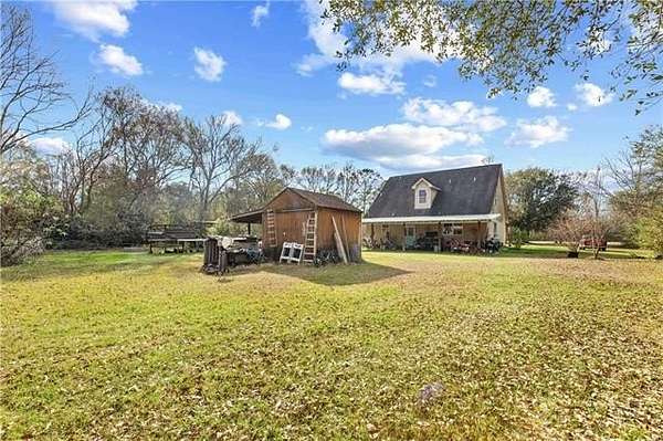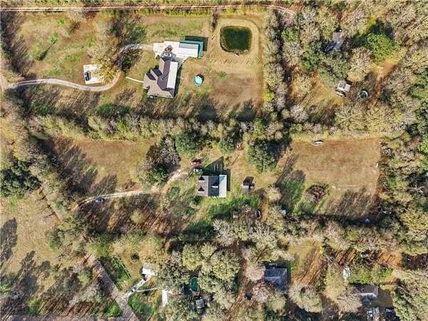 Enjoy peaceful, secluded country living just minutes away from Covington's restaurants, groceries, and shopping. This spacious home sits on 4 Acres adorned with beautiful mature oak trees offering privacy and room to roam. Features include 5 bedrooms + recreation room, 3.5 baths, kitchen equipped with stainless steel appliances, double ovens and a wine cooler, inviting open floorplan with 9 foot ceilings connecting the living, dining and kitchen areas ideal for entertaining. The primary suite is located downstairs, offering comfort and convenience, while the second floor includes 4 additional bedrooms with 2 full Jack -and- Jill bathrooms. Property is priced to sell recognizing that some freshening up & TLC is needed, but also a great opportunity to update and make it your own- or renovate and flip for a strong investment return. Covered porches span across the front and back of the home, with an expansive is 584 sq. ft. rear patio-perfect for outdoor entertaining, shed/workshop, and located in Flood Zone C with NO HOA dues! This is a rare opportunity to enjoy space, privacy and proximity to town. Motivated seller- don't miss it!!