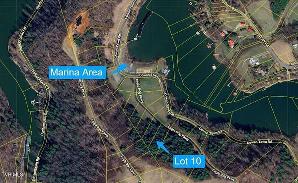 From Hampton TN, E on US-321 S toward Boone 9.6 miles, R on US-321 toward Boone 9.8 miles, L on Greggs Branch Rd 1.4 miles, R on Buntontown Rd 0.8 miles, R on Cowan Town Rd 0.3 miles, R into Eagle Bay through gates (no code required), R on Eagle Bay Pkwy, Lot 10 is on R.