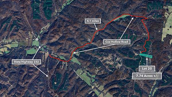 From Hwy 232, turn on Upper Standing Rock Rd, turn to Cox Hollow Rd, turn to Iron Mount East Rd. follow until road forks the 2nd time- stay left, look for Lot. If you are unable to find the location I have a pin I can send that will get you to development