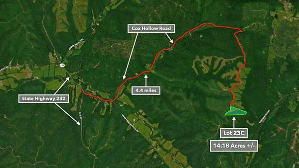 From Hwy 232, turn on Upper Standing Rock Rd, turn to Cox Hollow Rd, turn to Iron Mount East Rd. follow until road forks the 2nd time- stay left, look for Lot. If you are unable to find the location I have a pin I can send that will get you to development