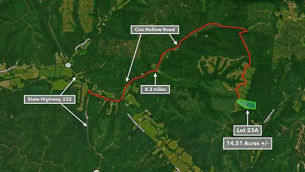 From Hwy 232, turn on Upper Standing Rock Rd, turn to Cox Hollow Rd, turn to Iron Mount East Rd. follow until road forks the 2nd time- stay left, look for Lot. If you are unable to find the location I have a pin I can send that will get you to development