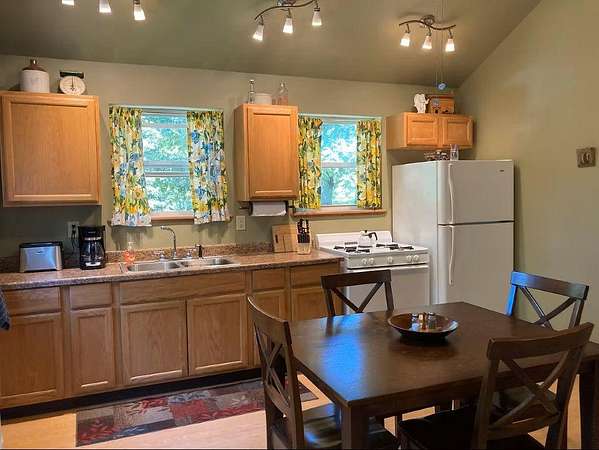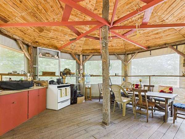 Redbud Cottage is a fully furnished cabin, accessible and private, on a well-maintained one-mile gravel road. It features a lower-level BR & BR in the upper-level loft. Fully equipped kitchen with appliances, & screened porch, a covered picnic area, & outdoor fire pit. The cottage is air-conditioned & has gas heating for year-round comfort. The property includes six off-grid furnished cabins, a kitchen pavilion, and a sauna, with water connected through a rural supply, well and septic system. Connecting with parkland at Buffalo Point, the property offers stunning views & access to Panther Creek & the Buffalo River. Whether you prefer floating on the Buffalo River, fishing in the White River, or relaxing by the fire pit, this property promises a delightful experience. It has been recognized as an official "Dark Sky" cottage by the Arkansas Dark Sky Association since 2021. Ample parking is available for vehicles & outdoor gear, easy access to nearby attractions like the Buffalo National River & the historic Rush District.