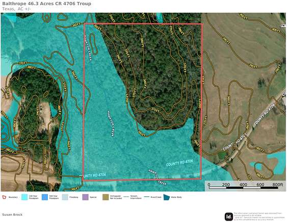 Good hunting property potential with 46.3 acres in same family for generations located in Troup, Tx. at Henry's Chapel on C.R. 4706 just off FM 13. The property has not been hunted on or used according to seller in many years and has timber exemption and timber management. Heavy timber coverage with creek running through property. Good value for timber and has 6 year timber management plan including a select harvest scheduled in 3-5 years with native Loblolly Pine and Hardwood. Value estimates are approximately 34 tons of Sawtimber per acre of hardwood for 46 acres and 47 tons of Sawtimber per acre of pine on 23 acres. Pulpwood estimated value is 1.25 - 1.30 tons per acre for both pine and hardwood. Seller to convey June 2024 survey and field notes once completed. Half the tract is located in a flood zone. Great opportunity to prep property for upcoming hunting season. Sellers are motivated. Last pic is potential pathway along east boundary to a great potential building site in a large, flat area at the highest point of the property. An estimate of $12,000-$15,000 has been given that would provide a mulched pathway, a culvert to enable crossing the creek, and a cleared area for a future home site pad. Call today!