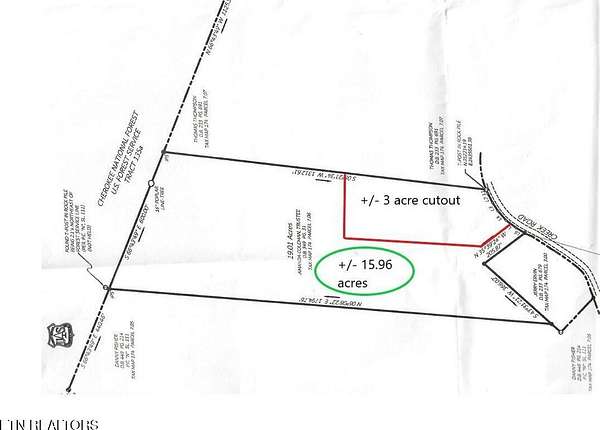 Discover a rare opportunity with this +/-16-acre parcel, being subdivided from a larger +/-19-acre tract (see approximate sketch in photos). Mostly cleared, this property offers +/-600 feet of direct access to Cherokee National Forest along its backside--perfect for your private homestead or weekend retreat. Enjoy boundless acres and miles of horse trails right at your doorstep. From the rear of the property, Bullet Creek Falls is approximately 1/2 mile away as the crow flies, adding natural beauty to this serene escape. Ideal for an off-grid lifestyle or a peaceful getaway, this unrestricted land is a true gem with National Forest adjacency. Just 10 minutes from Starr Mountain's 20 miles of public horse trails. Acreage and dimensions are estimated, to be finalized upon official plat approval. Closing is contingent upon planning commission final plat approval.