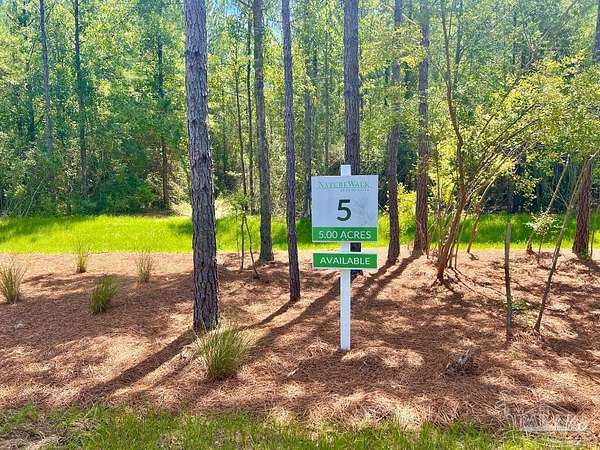 Discover the beauty of NatureWalk at Pond Creek. This charming exclusive community is nestled amidst pine tree forests, lush greenery, scattered oaks, and natural flowing creeks. The idealistic landscape is almost "untouched" providing privacy, peace, and serenity for each lot. Lot 5 is located on a quiet side road shared with 4 additional lots. This lot is level, high, dry, with mature timber. This unique community is situated on 653 acres of land, 90 lots in total, and consist of 2 to 15+ acre homesites inclusive of premium creek front parcels. The Owner's vision for this community is simple, Quality Family Living Centered Around Nature. Mornings are for quiet nature walks amongst the pines, a relaxing afternoon can be enjoyed by your family beside a your very own private creek, and evenings can be filled with friends, laughter, and games around a wood burning fire pit. NatureWalk at Pond Creek is located within a short drive to Publix, Big Box stores, restaurants, Doctor's offices, & Hospitals. Our community is centrally located for the outdoor enthusiast: From Blackwater River for freshwater fishing/boating, Blackwater River State Forest for it's small creeks, horseback riding, nature trails, zip lining, canoeing and tubing, to our Gulf Coast with emerald blue waters of the Gulf of Mexico and sandy white beaches. Santa Rosa County has family in mind with the many parks, splash pads, and biking trails great for fun filled family outings! Pace offers PARA (baseball/softball/football) along with West Florida Soccer both of which are within a 15 minute drive to our community. Santa Rosa County has top rated Public and Private schools, for our military families, our community is within close proximity to Whiting Field, Elgin, and Pensacola NAS. If your family is looking for a place to call home, away from the hustle and bustle of everyday life, NatureWalk at Pond Creek is inviting you to enjoy the finest nature has to offer.