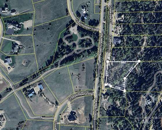 Open your future windows and listen to the soothing creek. Great Lot with building spot overlooking Alder Creek with evergreen mountains behind. PRICED TO SELL in a beautiful subdivision with walking paths and mountain views. Building spot with some excavation needed, then build a path down to the Creek and walk the nature trails through Crosstimber subdivision. Just a mile from the Southfork of the Payette for rafting, kayaking and fishing. BLM land all around with 100's of miles of trails.