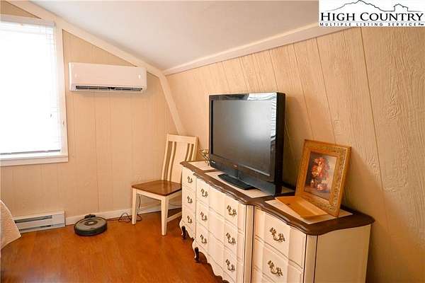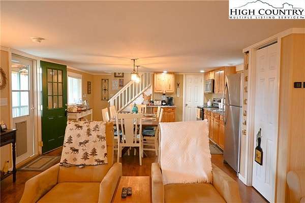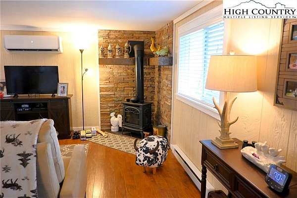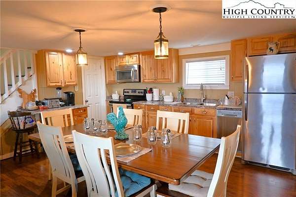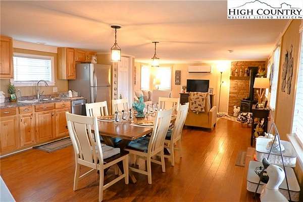 Meticulously maintained Turn-key Mountain cottage on over 3 acres with "In your face" long range mountain views located near the New River. What more could you want at this price? Open dining/living area with half bath. Sofa in living room pulls out to a queen bed for additional sleeping. Huge dining table in kitchen for all to gather around. Upstairs you will find a Bedroom, full bath, laundry and another sitting/sleeping area for guests. Sit back and relax at the Fire Pit and enjoy nature in a peaceful and serene setting. The parcel where home sits is fully fenced in for the children to play and fur babies alike. There is also an additional adjoining lot that is included. This home will be great for full time or getaway living. See documents for 2BR Septic Permit.