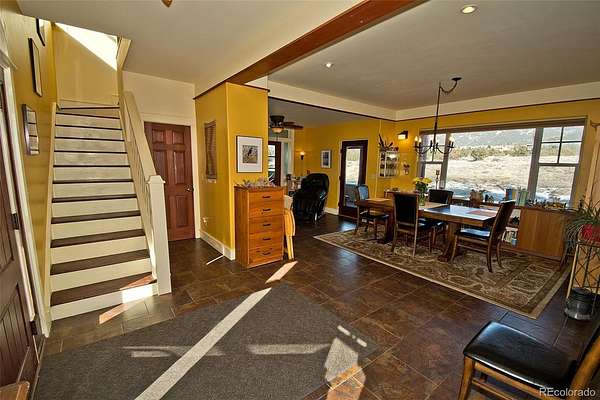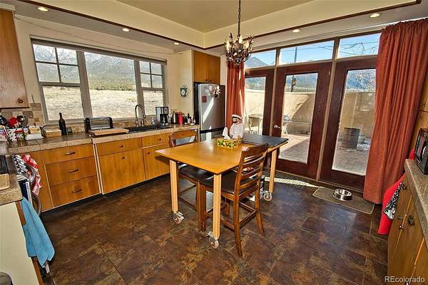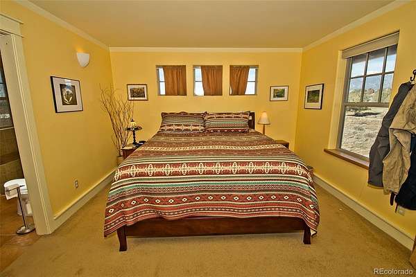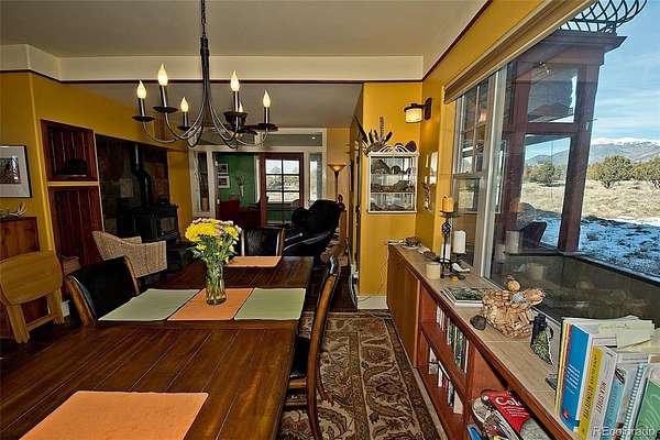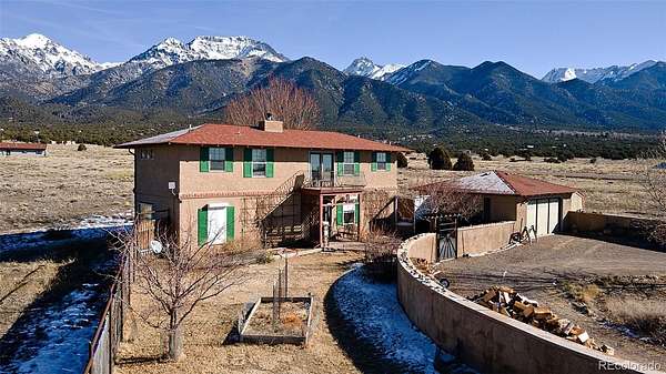 Welcome to 1552 Camino Real, a place of quiet ease where space, light, and calm greet you the moment you arrive. Set on 1.77 acres in the heart of the Baca, this thoughtfully designed two-story home offers sweeping mountain and valley views, privacy, and a deep sense of connection to the surrounding landscape. Built in 2005 and oriented to welcome natural light throughout the day, the layout unfolds with ease; a comfortable main living area complemented by thoughtfully integrated upper-level spaces, creating a home that feels both grounded and expansive, with a gentle, intuitive flow. The main floor features an open living and dining area, cosy sitting room, a bright and welcoming kitchen that opens to the courtyard & a sunoom with mountain views, ideal for reading, art, or quiet moments of reflection. Radiant floor heat and a wood-burning stove provide year-round comfort, while generous windows frame ever-changing views of the Sangre de Cristos and invite the outdoors in. Upstairs, 3 bedrooms and 2 bathrooms offer separation and privacy, including a spacious primary with en suite and direct access to an outdoor balcony, to greet the morning light or unwind beneath the star drenched night sky. Thoughtful built-ins, tile counters, and warm finishes throughout lend the home a calm, lived-in elegance. Outside, the land feels open and full of possibility, inviting gardens, animals, and gatherings beneath wide skies. The property includes a private yard, balconies, courtyard, and a detached garage with greenhouse. Situated in the Grants, where horses are welcomed, this property offers the rare combination of paved road access and electric service, paired with the freedom of a private well, providing fresh mountain water and no water bill. A rare opportunity to own a peaceful, well-established home in one of Crestone's most distinctive settings, a place to settle in, breathe deeply, and live with intention, in harmony with the land that surrounds it.