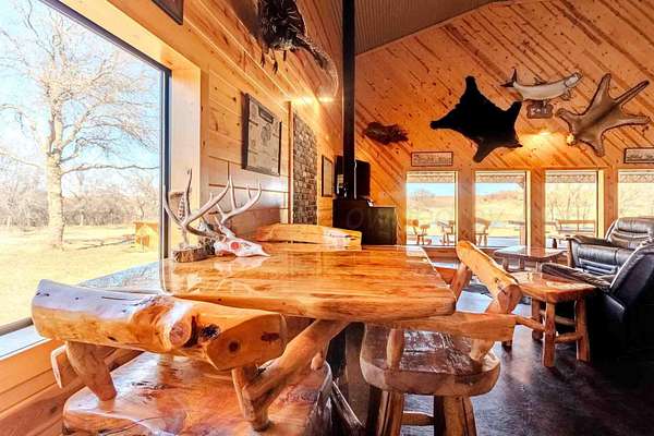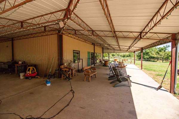 Crush Ranch represents a turn-key recreational honeyhole only an hour southeast of Amarillo. The property is a total of +/-631 acres with 540-acres under high fence. Tucked away within the property you will find the practical yet impressive, metal rustic lodge. With multiple spring-fed ponds, high fences, excellent hunting, extreme privacy, Salt Fork of the Red River access, gently rolling terrain, and awesome lodging, this oasis will impress the most discerning buyer. This property is ready for you and your family to enjoy. Location: The Crush Ranch is found in the eastern Texas Panhandle, +/-10 miles northeast of Clarendon and approximately 1 hour east of Amarillo. It is about 1.8 miles off of paved FM 1260. The property is bordered by two large ranches to the north, with the Salt Fork of the Red River forming its northern boundary. Water: This panhandle ranch will not disappoint with water availability, boasting 4 spring-fed ponds and the Salt Fork of the Red River running along the northern boundary for 1 mile. A short distance from the house, the 3/4-acre spring-fed pond is stocked with bass, catfish, and sunfish. Two water wells on the property, one for the house and stock tank, the other a solar-powered well as a backup. Nearer the river, you will also find 3 spring-fed tanks. Land / Wildlife: The majority of the terrain is gently rolling with elevations ranging from 2385' - 2540' above sea level. The ranch supports a healthy population of Whitetail deer with improved genetics, turkey, wild hogs, a few fallow deer, two zebras, quail and other native species. Prime duck hunting as well and set up with a duck blind overlooking the Salt Fork. Approximately 540-acres inside high fence and 100 acres with low fence on the Salt Fork Red River. The property is turn-key for the outdoorsman with 7 hunting blinds (5 new), 7 corn feeders (4 new), and 3 stand & fill feeders, as well as 3, 1000-pound protein feeders Improvements: Tucked away within the property you will find the practical yet impressive, metal lodge. This rustic home-away-from-home includes 3 bedrooms, 2 bathrooms, spacious loft area for additional sleeping and entertaining, pine walls throughout, cedar cabinets, vast ceilings, wood burning stove, and stained concrete floors. You will also appreciate the open and inviting living/kitchen/dining area with numerous large picture windows overlooking the pond, as well as the expansive 20' wide porch running along 2 sides of the house. Located near the house is the equipment shed with a walk-in cooler and storage container. A small set of working pens are conveniently positioned near the county road at the main entrance. Landscape: The property consists of rolling pasture/ranchland and plenty of cover for wildlife. The soils here within are listed with accompanying percentages for area of interest totaling 100%: Lincoln loamy fine sand (Ln) 24.12%; Tivoli fine sand (Tf) 20.37%; Springer loamy fine sand (SgD) 20.22%; Likes loamy fine sand (Lk) 17.47%; Mobeetie-Tascosa complex (MTE) 13.05%; Mobeetie-Veal-Potter complex (MxD) 2.35%; Miles fine sandy loam (MfC) 1.33%; Sweetwater silty clay loam (Sw) 0.85%; Miles fine sandy loam (MfB) 0.25%. Exclusions: All mounts at the house, personal pictures, art, and tractors and implements will be excluded from the sale. Zoning/Easements: The property is outside of any municipality therefore, it is not zoned. All existing easements will be identified by surveyors & the title company. Estimated Taxes: Ag Exempt. Area: This parcel sits in northeastern quadrant of Donley County.