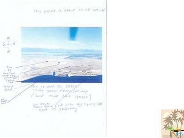 Magnificent! Breathtaking! One of a kind. 418.17 acres of untouched land all within view of the Salton Sea. The combined 5 parcels include 6 lots: Currently zoned R1-L5, the zoning does allow for Elementary School, Residential Care Facility etc. with a conditional permit, Church, Golf Course, Tennis Club, Country Club, Senior Citizen Compex. The potential is outsanding. Several hot water wells are located not too far from the parcels. Solar Energy Farm may be a possibilty with a change in the zoning. The additional parcel #: 013-010-11, 013-010-17, 013-010-13, 013-010-18, 013-010-09 What can you imagine???