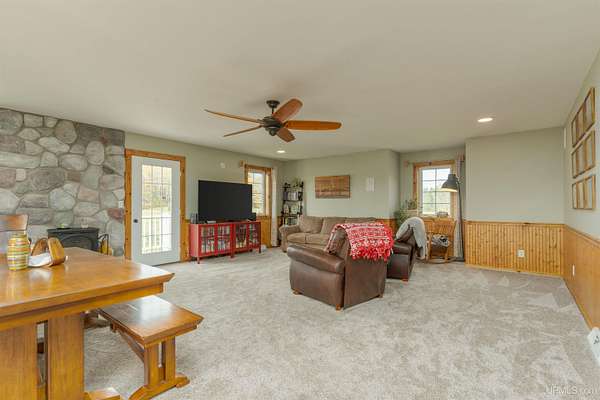 Est $2,298/moImagine mornings with coffee overlooking 10.5 private acres of lush gardens and evenings by the water. This move-in ready 3 bedroom, 1.5 bath home, which includes two parcels, offers the perfect blend of wilderness and comfort. With the second 1.3 acre parcel, enjoy 106 feet of private frontage on West Maggie Lake—a serene, no-wake lake preserved for quiet fishing and kayaking. This home boasts a remodeled kitchen, spacious living room with a cozy gas stove, and a drive-in two-car garage. The association membership grants you exclusive access to community lots on both Maggie Lake and Little Maggie Lake and it's just minutes from world-class ATV/snowmobile trails and Brule River!