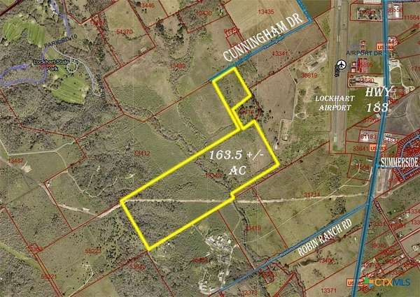 163.5 +/- Acres on the edge of Lockhart. So much development in the works around this town. Clear Fork Creek runs through the property. Lots of potential here. Property is in the ETJ of Lockhart. Nice elevation towards the back of the property. Approximately 100' in elevation change on the property. Beautiful trees along the creek, great for camping or hiking. City water to the property. Electric and sewer line nearby (buyer to verify availability and capacity of utilities) Less than 2 miles from Walmart and approximately 3 miles to the Courthouse Square. Make an appointment to view this one today!