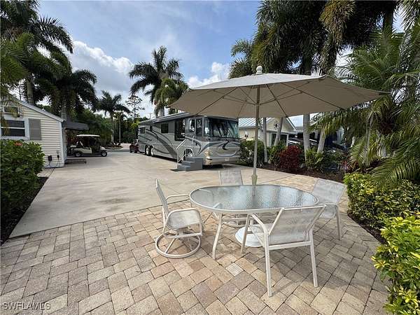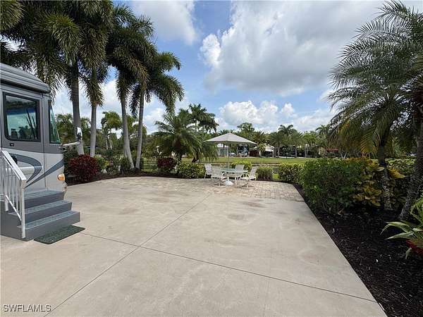 Tropical Elegance at Lot 116 in RiverBend Motorcoach Resort. Seize the chance to turn this property into your ideal getaway and immerse yourself in the unmatched charm, vibrant community, and timeless elegance that make RiverBend Motorcoach Resort a top destination for Class A motorcoach owners. Discover your very own slice of paradise, a coveted North-facing property boasting serene water views and an enviable location close to all the action! Nestled in the heart of the award-winning RiverBend Motorcoach Resort, this property is just a short stroll from the sparkling pool, bocce and shuffleboard courts, the lively pool cabana bar, and a host of other amenities. The lot itself is a canvas awaiting your personal touch, featuring a concrete pad with a charming lanai adorned with pavers. The cozy coach house is designed for functionality and comfort, offering a small kitchenette space, a refrigerator, a bathroom with a shower, and a handy closet for all your essentials. Large swaying palms along the waterfront add both privacy and a touch of quintessential Florida charm, making this property a peaceful retreat amidst a tropical haven. RiverBend Motorcoach Resort isn't just a community, it's a lifestyle of refined relaxation and vibrant connections. Immerse yourself in the luxurious amenities that define this premier Class A motorcoach destination. From the grand resort-style pool to the pickleball courts, putting green, and private boat ramp with direct access to the scenic Caloosahatchee River, there's always something to do. Explore your creative side at the Creations Clubhouse, or feel the thrill of the R/C racetrack and Boat Club. This pet- and golf-cart-friendly resort offers a harmonious blend of Old Florida charm and modern luxury, surrounded by breathtaking landscapes and expansive common areas with river views. Residents form close-knit bonds while embracing a life of leisure, activity, and tropical beauty. Don't miss your opportunity to transform Lot 116 into your dream retreat. Experience the unparalleled charm, community, and elegance that make RiverBend Motorcoach Resort one of the most sought-after destinations for Class A motorcoach owners.