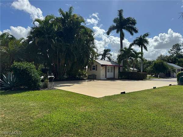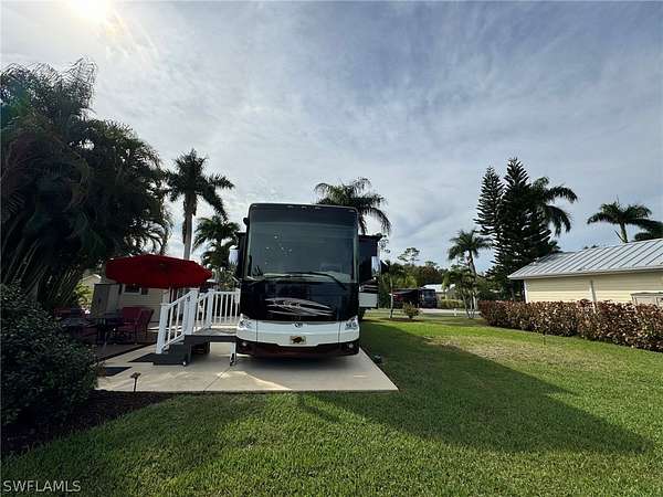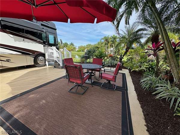 Discover Lot 121 at RiverBend Motorcoach Resort - Your Slice of Paradise! This northeast-facing lot offers a tranquil retreat with a corner view of the lake to enjoy day or night. This property is a blank slate, ready for your creative vision! Extend the lanai closer to the water to maximize the stunning views, or remover the smaller coach house and add a larger coach house and additional pavers to transform this space into your dream retreat. The possibilities are endless! With plenty of grassy common space to the west and lush tropical vegetation for privacy to the east, you'll have the perfect balance of openness and seclusion. The cozy coach house features a kitchenette with a refrigerator and washer/dryer, a bathroom with a shower, newer flooring, and a small storage space. The outdoor furniture, storage shed, and bench are included, so you can settle in right away! Whether you keep it as is or build your dream coach house, this property is ready to shine. At RiverBend Motorcoach Resort, life is as vibrant as it is luxurious. Golf cart and pet-friendly, this resort boasts wide streets, mature landscaping, and a sense of community that's truly special. Enjoy top-tier amenities like a resort-style pool, shuffleboard, bocce, and 8 pickleball courts. The river clubhouse offers breathtaking views, while the pool clubhouse features a lap pool, hot tubs, and a cabana pool bar. Get creative at the Creations Clubhouse, join the excitement at the R/C racetrack, or relax in the natural beauty of this tropical oasis. With a private boat ramp and access to the scenic Caloosahatchee River, adventure is always within reach. Don't miss this chance to own a piece of one of Florida's premier Class A motorcoach resorts, where Old Florida charm meets modern luxury.