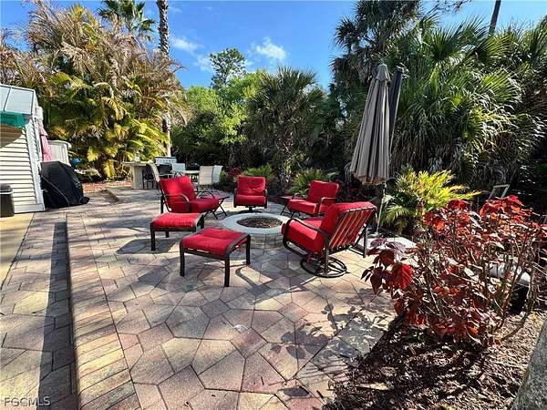 There's something about Lot 186 that just feels easy the moment you arrive. Maybe it's the way it's tucked into such a friendly little pocket of neighbors or maybe it's the fact that you're just steps from the pool, yet still perfectly positioned to enjoy your own peaceful retreat inside RiverBend Motorcoach Resort. This beautiful back-in lot was made for connection and comfort. The raised patio area becomes the heart of the property, the kind of place where evenings naturally turn into laughter-filled gatherings. Friends pull up the bar stools at the outdoor grill and patio bar, whip up a tray of hors d'oeuvres, and just like that, it's another perfect night under the palms. During the day, the patio offers plenty of room to stretch out and relax. Morning coffee tastes better out here. Afternoon breezes seem softer. There's space for all your outdoor furniture, and then some. The landscaping is lush and tropical, with seasonal pops of colorful plants thoughtfully added to keep that fresh, vibrant Florida feel all year long. Step into the coach house and you'll immediately notice how light and welcoming it feels. A soft, neutral interior keeps everything bright and timeless. Tile flooring, a ceiling fan, and a dedicated AC unit ensure comfort in every season. There's also a mini fridge and washer-dryer, because convenience matters when you're living the good life. The bathroom is a sweet surprise, offering just the right hint of coastal charm. A lovely shower, blinds on every window, and glass French doors with built-in blinds complete the space beautifully. And the location? Truly ideal. Just a short stroll to the clubhouse or pool, making it effortless to jump into the fun or take a refreshing dip whenever the mood strikes. Even better, outdoor furniture conveys with the purchase, along with select interior pieces, making this feel almost turnkey and ready to enjoy from day one. When it's time to socialize, head down to one of our clubhouses. Yes, we have three! Whether you choose poolside afternoons at the cabana bar, refreshing swims in the resort-style pool, relaxing soaks in the hot tubs, or riverside evenings filled with live music and themed dinners, there's always something happening. Feeling adventurous? Jump into trivia night, gather for bocce, try Zumba or line dancing, test your poker face at Texas Hold-Em, and so much more. The lifestyle here is active, welcoming, and full of energy, and you can be as social (or as relaxed) as you'd like. That's the beauty of it. Pull in, plug in, and let the fun begin at RiverBend Motorcoach Resort.