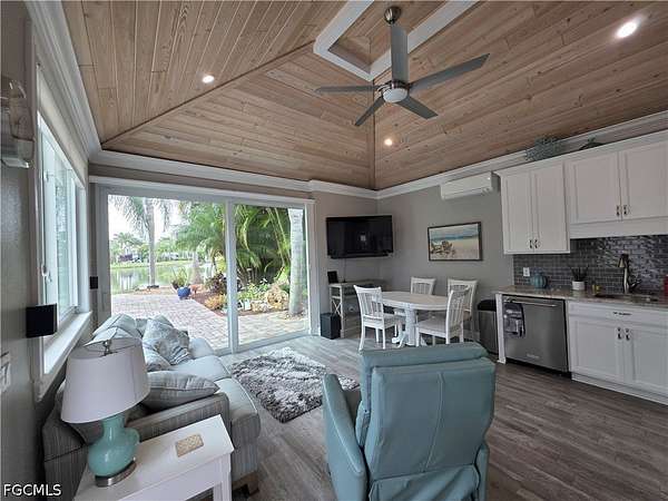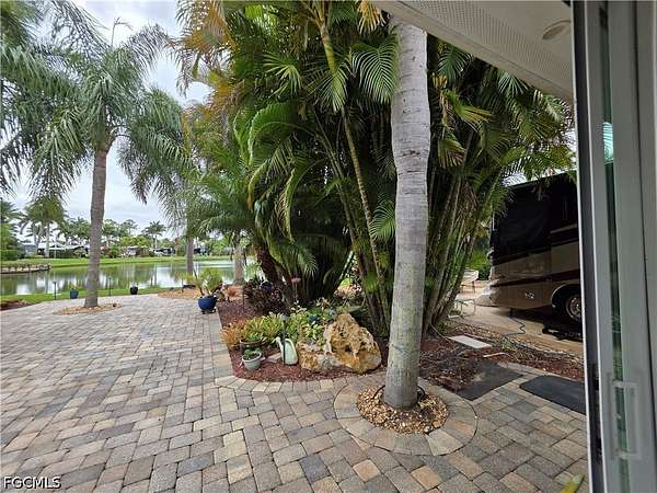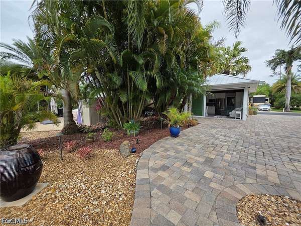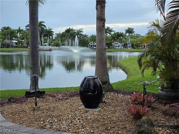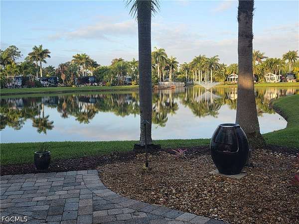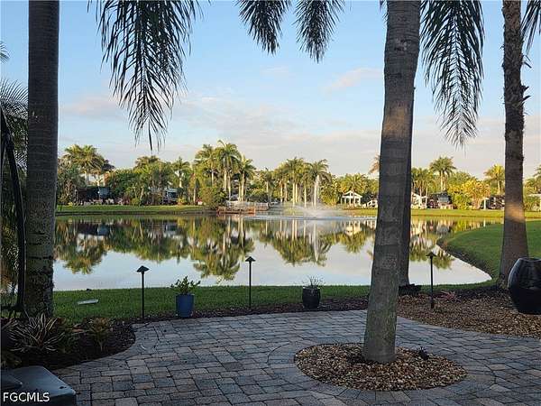 Lot 88 offers a rare opportunity to own your own slice of paradise, where every day begins and ends with breathtaking views. Start your morning with a peaceful cup of coffee by the lake, watching the fountain shimmer in the early light. As the day winds down, relax on your private patio and take in spectacular sunset skies that make every evening unforgettable. This beautifully maintained lot features elegant pavers and lush tropical landscaping, creating a serene and inviting outdoor space. The thoughtfully designed coach house boasts an open layout with custom cabinetry, abundant storage, a washer and dryer, and a full shower-perfect for comfortable, easy living. Located in the heart of the resort, Lot 88 is within walking distance of the Olympic-size pool and two hot tubs, you'll also enjoy access to a variety of amenities including shuffleboard, bocce, horseshoes, and a putting green. Spend afternoons at the Benders Pool Bar enjoying tropical drinks and meeting new friends, or head into the Pool Clubhouse for a workout in the fitness center or a game of cards. Take a short stroll over the charming walking bridge to the River Clubhouse, home of Benders Bar, where residents gather for bingo, billiards, bunco, cornhole, concerts, and social events. Just beyond, the Caloosahatchee River awaits, complete with a private boat dock and boat slips. Along the way, enjoy the delightful miniature train village, where trains wind through bridges and tunnels. Unlike most other resorts, RiverBend has a Creations Guild for those so inclined to express their creativity in a variety of projects. This golf cart, pet friendly resort is more than just a property, it's a lifestyle filled with relaxation, recreation, and community. Don't miss this exceptional opportunity to make it yours.