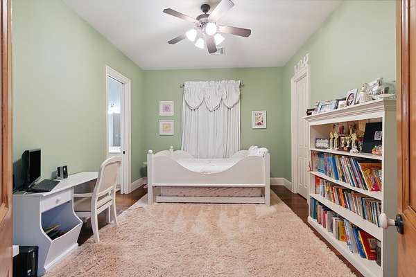 - Attic Storage, Beamed Ceilings, Ceiling 9'+, Computer Nook, Crown Molding, Home Entertainment System