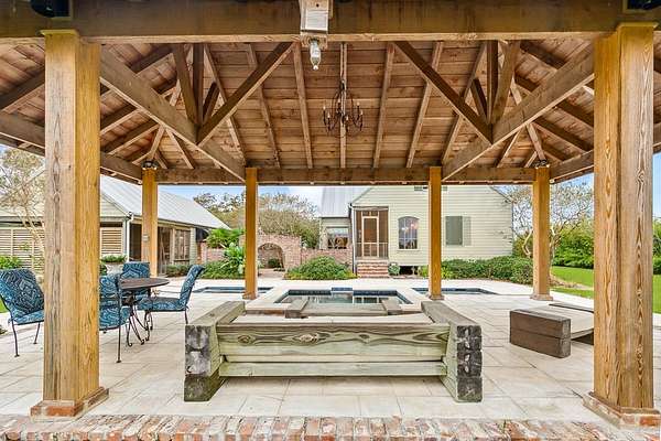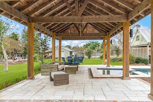 Est $4,233/mo3.2 acres: Inground heated pool : Outdoor pizza oven: Firepit : Cabana: 4, possibly 5 bedrooms: Luxurious tendura plank porch flooring : Exquisite carlisle wild/old growth walnut plank floors; Soapstone counters in kitchen: Fully equipped theater/media room: Top technology in home: Fireplace: 3 AC units dated 2020, 2021, 2022 : Tankless water heater: Cement slab supported by 18 " piers with each pier featuring an antique brick threaded rod bolted to the finished floor: Walk in closets: Courtyard: Pavillion :Durable metal steel roof: Subsurface drainage system: Cypress shutters: Galvalume gutters: Whole home generator: Outdoor kitchen : Outdoor enclosed seafood boiling room.
