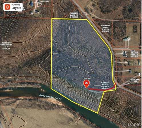 45.7 acres for sale just a few minutes north of Saint Roberts Missouri. Property is off of blacktop (Highway PP). Property has amazing views, overlooking the Gasconade River and valley. Property is mostly all wooded with a new gravel road leading to a brick 4 bedroom, 3.5 bath home with extra living room and full basement. House needs complete remodel and extensive work, but the bones and structure of the house are in good shape. Would be a large, beautiful home once finished. Property goes down to river. There is a campground just a couple miles away that provides access to the river for a boat. Sellers will provide a survey. Price is for land with no value attributed to the house. House could be very nice if fixed up, being sold as-is.
