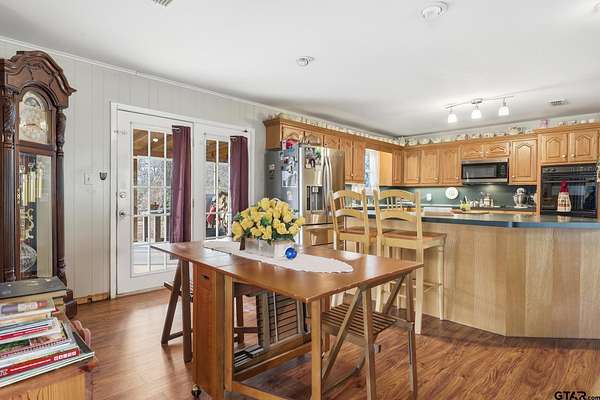 This well-maintained 3-bedroom, 2-bath home offers 1,924 square feet of comfortable living space thoughtfully designed for everyday living and easy entertaining. The layout feels open yet intentional, allowing each area to function efficiently while maintaining a natural flow throughout the home. The main living area is filled with natural light, creating a warm and welcoming atmosphere well suited for daily routines and relaxed gatherings. The kitchen provides generous cabinet and counter space that supports organized meal preparation, with convenient access to the dining area that makes hosting feel effortless. The primary bedroom offers a private retreat with an ensuite bath, while two additional bedrooms provide flexible space ideal for guests, a home office, or hobbies. The former garage has been enclosed and is currently used as a second living area, adding meaningful square footage that enhances the home's versatility and allows for separation of activities without impacting the main living areas. Situated on approximately 24.93 acres in Daingerfield, Texas, the property offers a rare sense of space, privacy, and usability. The acreage supports a variety of outdoor uses, from recreation and gardening to agricultural purposes, while remaining manageable. A small pond enhances the natural setting and adds visual interest to the landscape. An insulated workshop with electricity provides functional space for projects or storage and includes two roll-up doors and one walk-in door for convenient access. Located just minutes from Daingerfield Lake State Park, schools, shopping, and dining, this property balances peaceful rural living with everyday convenience. Homes offering this combination of acreage, flexible living space, and functional improvements are limited and best appreciated in person.