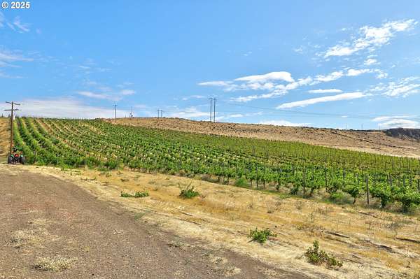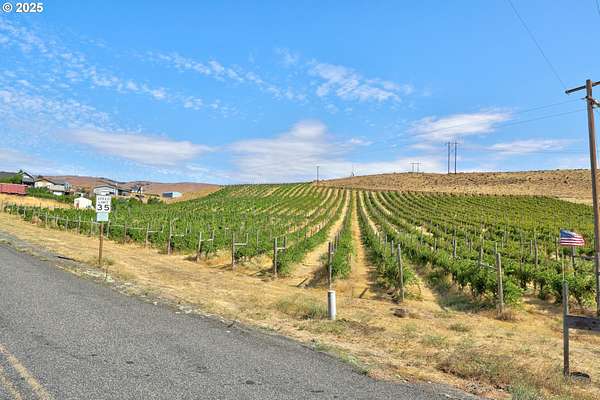 Presenting this 9.75 acre vineyard property which includes two tax parcels (7.7 acre and 2.05 acre). Enjoy the gorgeous view of Mount Hood and the Dallesport landscape. This vineyard offers a variety of grapes including Barbera, Petite Syrah and Nebbiolo. There are two wells, one fully functioning so there is plenty of water to meet the needs of this agriculture adventure. The gravity drip irrigation system is efficient and is easily maintained. There is a 50 amp RV electrical outlet installed on the site.If you are looking for an agricultural investment and a place to absorb the breathtaking views this place is worth a look. The onsite telecommunication tower lease brings in $400 a month as an added bonus.