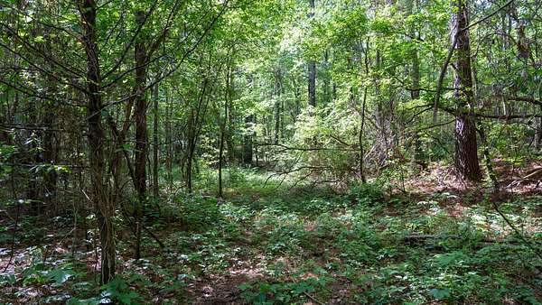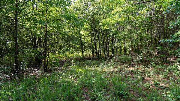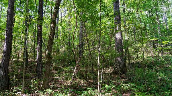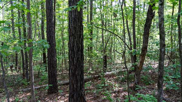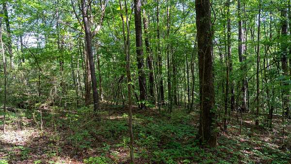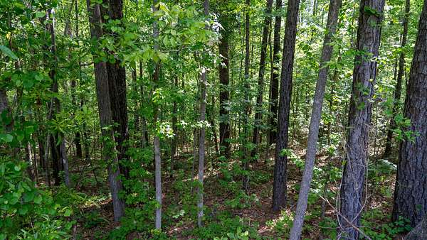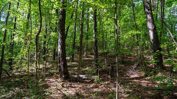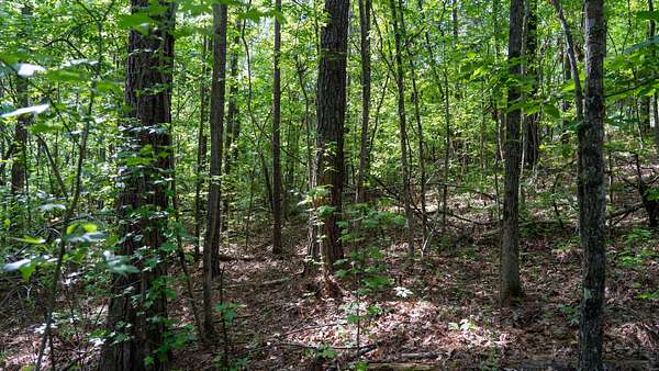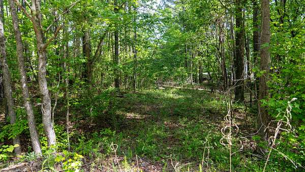 The tract is mostly wooded, creating a natural buffer from the road and a good backdrop for a homesite. A small open area provides a ready-made spot for building, a garden, or outdoor living space.