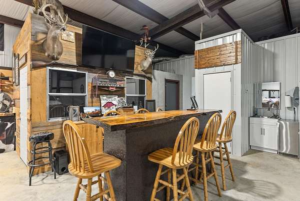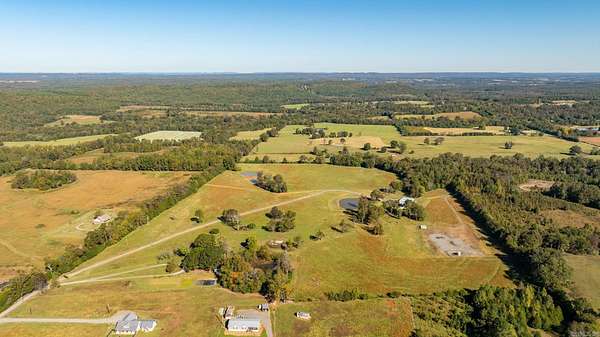 Welcome to this exceptional 54+- acre property in the Greenbrier School District/Wooster Elementary School zone, featuring a stunning red iron shop house. The home offers 1,408 sq. ft. of heated and cooled living space with 9-foot ceilings, stained and sealed concrete floors, and tinted windows providing privacy and improved energy efficiency. Inside, you'll enjoy central heat and air, an electric fireplace plus an emergency gas fireplace, a tankless water heater and much more. The kitchen comes fully equipped with all appliances conveying, including a gas oven, microwave, refrigerator and dishwasher. The 122' x 50' insulated red iron building includes a 30' x 50' lean-to, four electric insulated garage doors (three 12' x 12' and one 12' x 14'), and motorhome plug-ins on both sides. The shop also features a propane heater, an 18' x 50' storage loft above the living quarters, an office and a 6' x 10' safe room. The front yard is beautifully planted with bermuda grass. This beautiful acreage includes three ponds, two of which are spring-fed, offering natural beauty and versatility for recreation, livestock and peaceful country living.