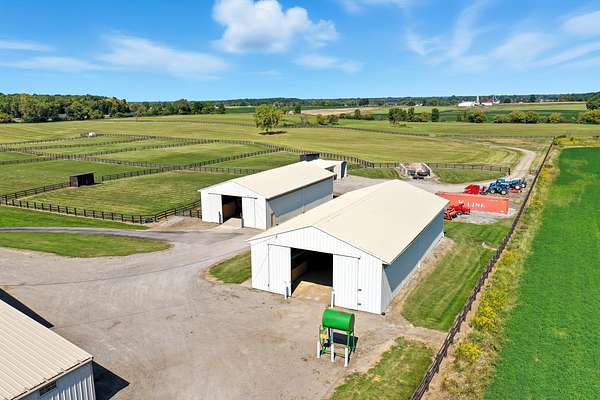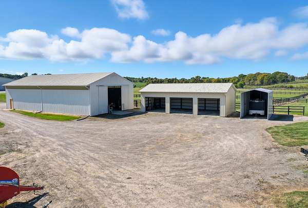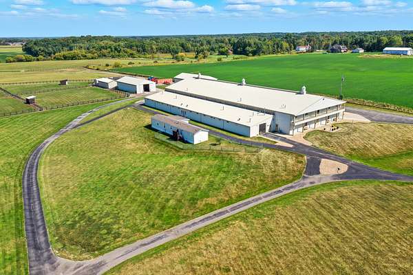 Featuring 42 stalls with 5 set up for birthing, 3 tack rooms, break room, farrier station, wash station, 2 restrooms, laundry room w/commercial grade appliances, tool room and workstation for equipment.