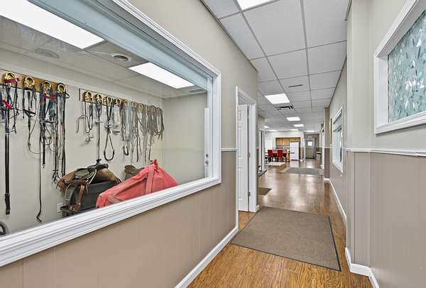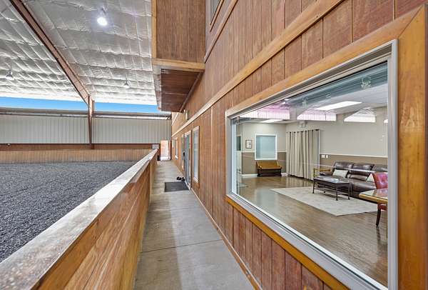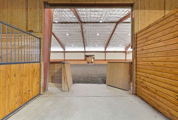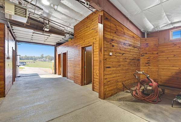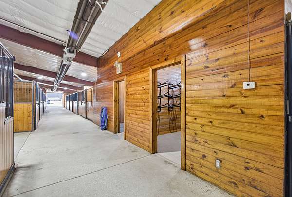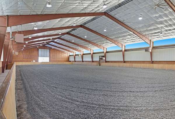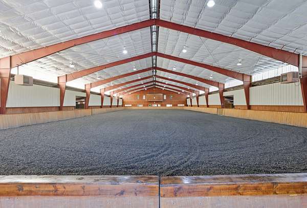 The entire facility is heated and cooled for year-round comfort. The indoor arena has a crushed rubber floor. Also, a spray system for flies is throughout the barn and screen curtains on the 4 big doors.