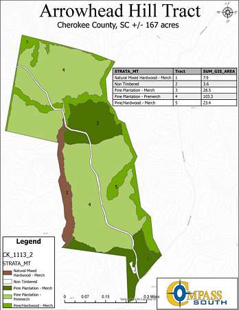 The Arrowhead Hill Tract is +/- 167 acres of land for sale in Pacolet, SC. Just 15 minutes from downtown Gaffney and 30 minutes from Spartanburg, this versatile tract offers a perfect blend of investment potential and recreational appeal.