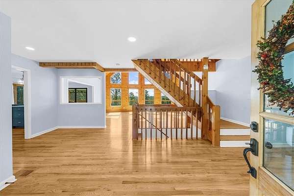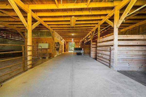 The long and beautiful tree lined driveway leads you to your private gated estate on 7.93 acres with seasonal views of Lake Lanier! This is where you will escape the hustle and bustle life can be and relax at your very own sanctuary of rolling pastures in solitude with your family, friends and farm animals. As you drive in and feel the stress melt away, you are going to love walking up to the charming front porch overlooking the barn and pastures perfect for rocking chairs and a hot cup of coffee in hand. Step inside and be wowed by the soaring vaulted ceilings with natural light pouring through in the great room. Lovely 3" oak floors throughout the main level and loft. The primary bedroom is conveniently located on the main level with picturesque views, brand new, stacking sliding doors (that open all the way) leading to the expansive back deck, and an updated spa-like bathroom. The loft has views overlooking the pastures and lake making it a dreamy office space or an additional sleeping area. The bright and updated kitchen with stainless steel appliances flows into the screened porch where you can cozy up with a nice book and your favorite beverage. The main level also features an updated full bathroom along with a half bath. Make your way downstairs where there is a second kitchen, living room, bathroom and two additional rooms that can be used as bedrooms, home gym, theater, office, etc. This opportunity is rare for MANY reasons and one of those is because of its location being less than 5 minutes to GA-400 providing easy access to the North Georgia Outlets, restaurants and shopping galore in Dawsonville, 25 minutes to the Cumming City Center, and 20 minutes to the charming town of Dahlonega with wineries and hiking trails galore! Another feature that makes this property unique is that it is permitted for a swim platform dock perfect for launching your kayaks from your own backyard, or you can drive 1.5 miles around the corner to Nix Bridge Park and launch your boat from the boat ramp. You'll find a new platform dock in the barn, just waiting to be installed. No HOA means the world is your oyster! There are two road frontages which allows for future expansion whether that's adding additional homesites, a pool, cabana, or a horse arena. The massive barn includes an updated one bedroom apartment with fresh paint and carpet perfect for multi-generational living or potential rental income with a full kitchen, living room, bathroom, laundry room and a covered carport. If you need storage, the barn has no shortage of it on the upper level. The lower level of the barn features four stalls, concrete floors, a tack room with shower, an office and space for all the toys the outdoor enthusiast can dream of owning. Live the life you have been dreaming of right here at 518 Overlook Drive today!