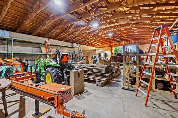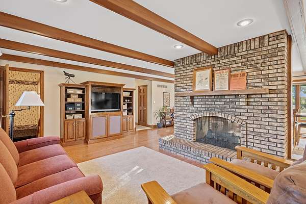 Bring in the new year with a new house! This one is sure to check a ton of boxes on your wish list! Situated on 2.5 acres with no close neighbors is where you'll find this all brick ranch on a full basement! As you enter the front door you'll love the dual sided gas ,all brick fireplace! You can enjoy this feature from the dining room and the living room. Both areas boast hardwood floors, oak beams and TONS of natural light. The spacious kitchen has solid counters, custom oak cabinets and comes with all appliances. A custom tile 3/4 bath is located right off the back door. The main bedroom offers a great full bath and a big walk in closet. Bedroom #2 and a huge laundry room round out this level. The full basement is home to a 24 x 30 rec room! This is a great spot to entertain! The walls are covered with log siding, barnwood and brick & there is a decorative corner fireplace. This rec room has brand new carpeting and comes complete with a pool table! There a 2 more finished rooms ,1 currently used as a craft room & the other a guest/3rd bedroom. These rooms have a 2nd access door & steps that lead to the garage. The basement also offers a 1/2 bath and 2 huge unfinished storage rooms. There's more.... in addition to the 24 x 26 attached garage there is a full masonry 42 x 70 outbuilding for the toys and projects! Other amenities include a whole house generator, a 900+ sqft custom rear patio and a concrete basketball court!